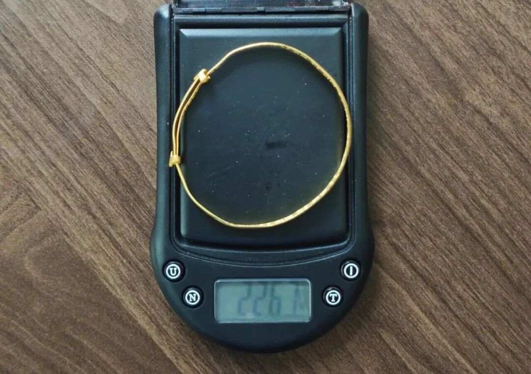 派出所民警到达现场后,对手镯进行称重,重量为22.67克,对比2013年手镯购买发票上的重量足足少了5.33克,立即将于某带回所内。